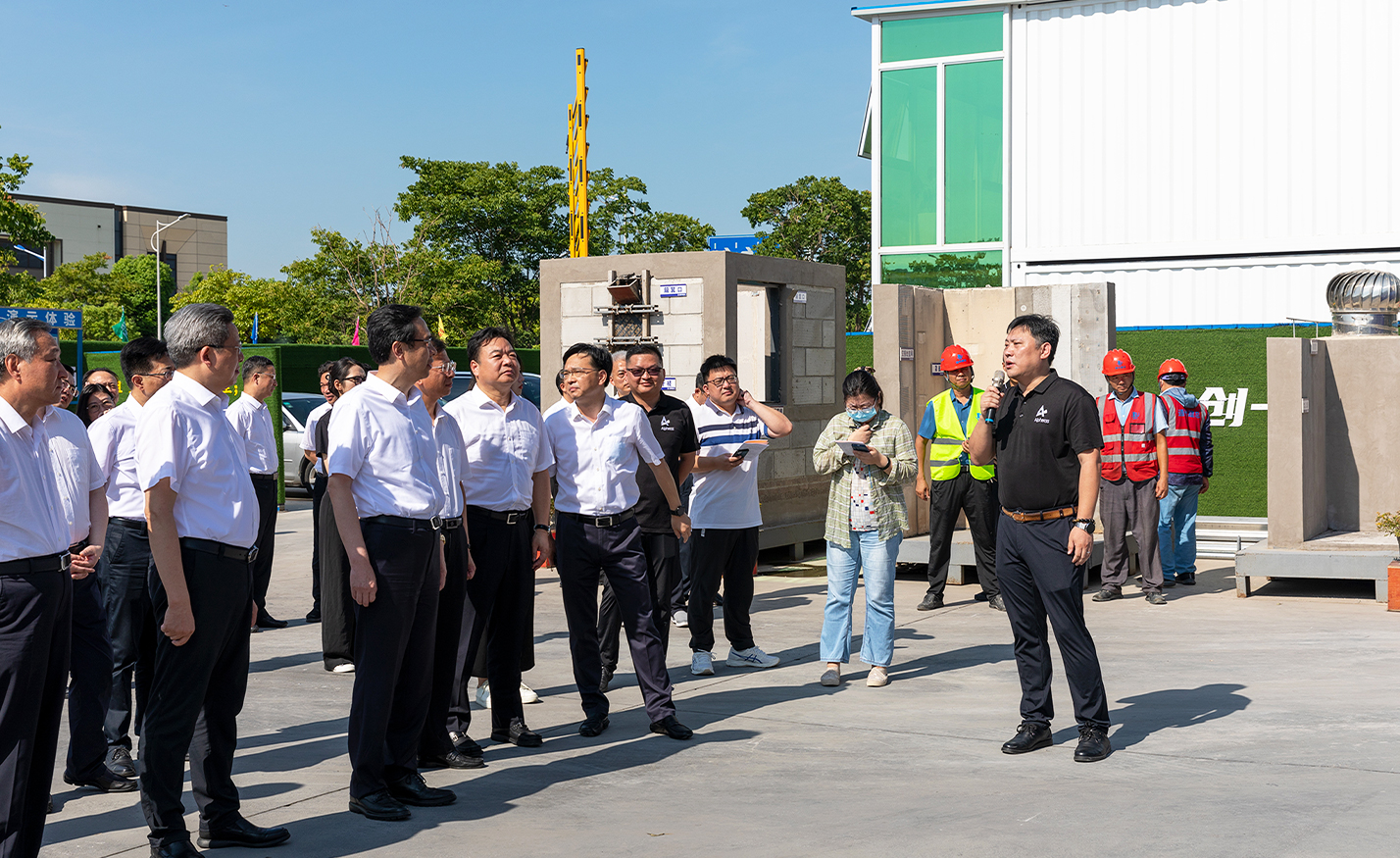 2022年8月9日,南通市委书记王晖,市委副书记、市长吴新明,市政协主席黄巍东,市人大常委会党组副书记、常务副主任庄中秋,市委副书记、宣传部部长沈雷等一行人莅临amjs澳金沙门能源年产7万套新能源储能系统的总部大楼项目建设基地,实地调研考察项目建设运营情况,amjs澳金沙门能源总裁王珺,副总裁张新艳等公司领导热情接待。